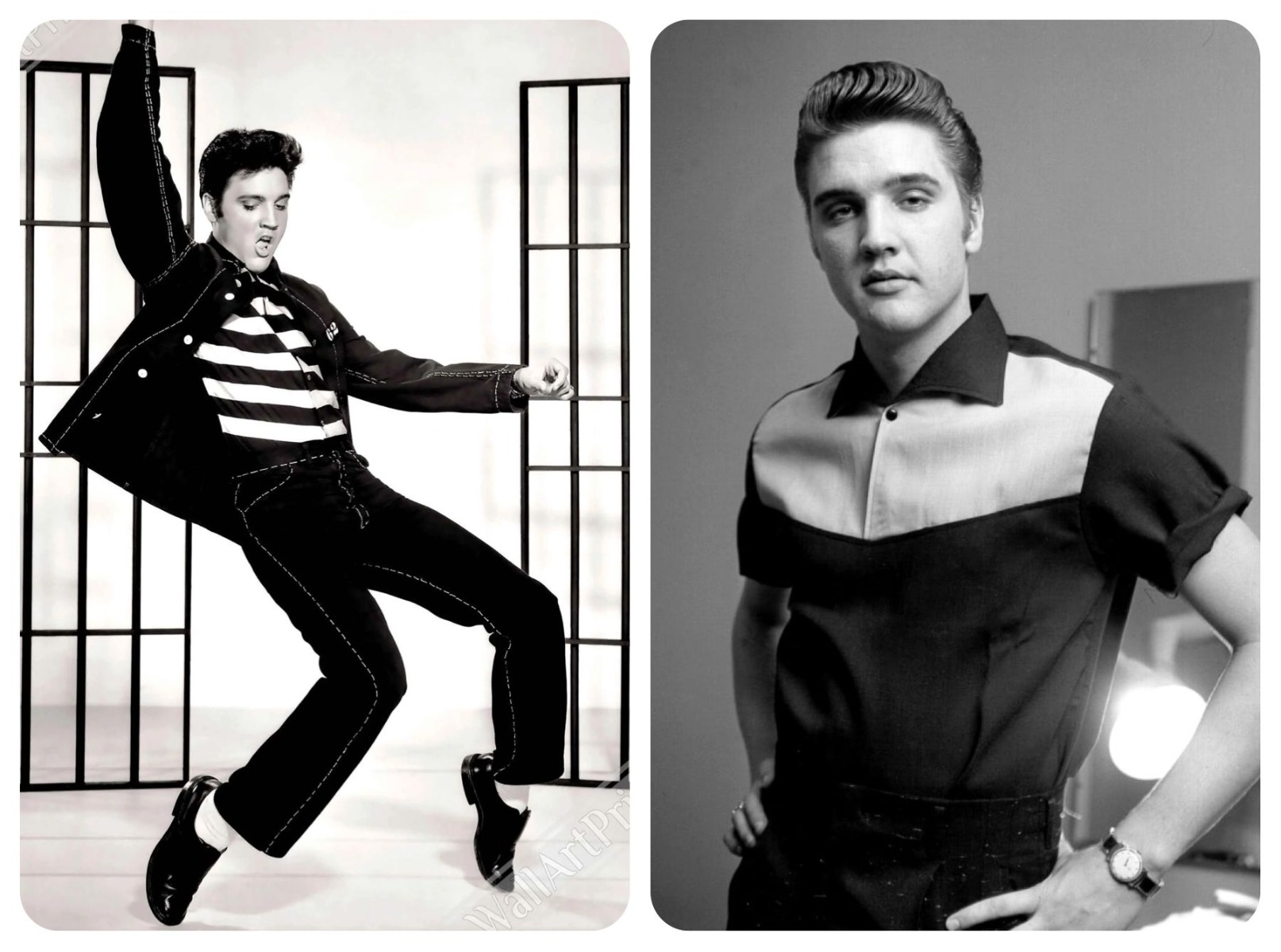 Laten we beginnen in de jaren '50, de gloriejaren van een jonge Elvis. Hardwerkend en vol hoop reisde hij samen met zijn groepje doorheen het land. Waar ze ook heen gingen, iedereen hing aan de lippen van dit veelbelovend talent. Vernieuwend, energiek en sensueel. De Amerikaanse bevolking had dit nog nooit eerder gezien. Al snel werd dan ook duidelijk dat dit nog maar het begin zou zijn van een prachtige carrière. Niet alleen zijn muziek bleek een inspiratie voor velen te zijn, Elvis profileerde zich ook al snel as een echt stijlicoon. Cuban Collar Shirts, pleated trousers, penny loafers en een voorliefde voor kleurrijke kleding was wat Elvis typeerde.