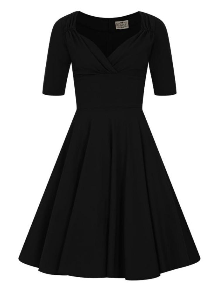 De zwarte Trixie Doll Dress van Collectif geeft al onmiddellijk een duistere twist. Een nauwaansluitend bovenstuk met wijde rok geeft vele mogelijkheden. Een zwarte petticoateronder en laat de boswandeling bij zonsondergang maar komen!