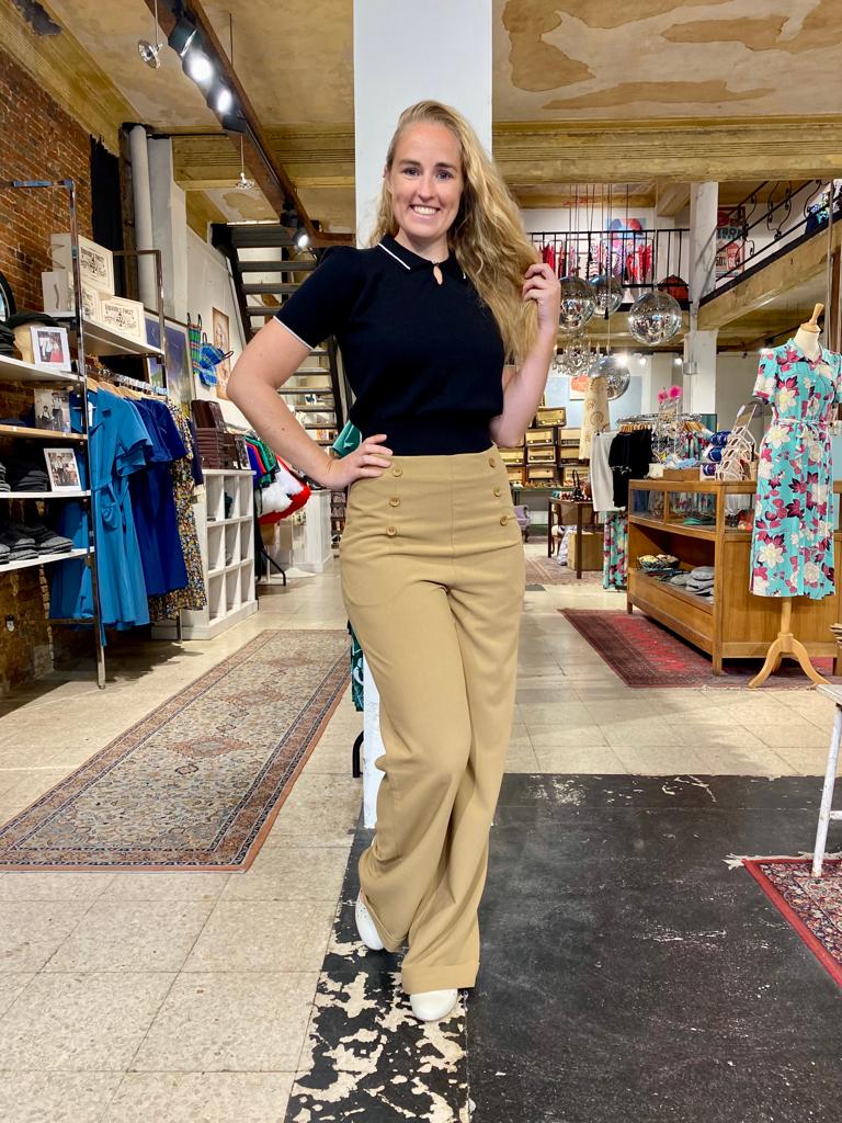 Ook onze Ava pantalon doet mee in het feestgedruis. Onze nieuwe Camel kleur is perfect voor de frisse lente en zwoele zomer! Perfect combineerbaar met de zwarte Eliza of onze nieuwe Ella blouse in turqouise. Helaas kunnen we op foto het originele kleur niet volledig benaderen, ondanks de vele pogingen. Geloof ons maar zeker dat dit prachtige kleur niet mag ontbreken in uw kleerkast!