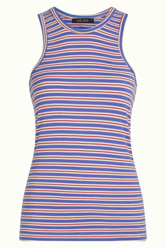 King Louie nieuwe SS25 collectie: de Elvira Camisole Surf Stripe in Baja Blue.