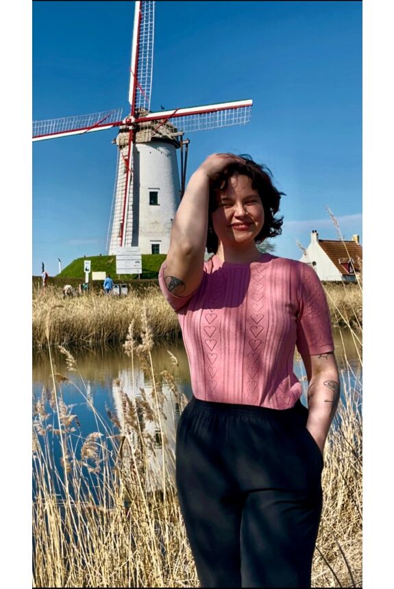 Deze zacht, gedempte roze jumper in de kleur van delicate bloemblaadjes van een bloeiende roos is perfect voor het voorjaar! De top heeft een ronde halslijn, korte mouwen en is afgewerkt met fijne stretch ribboorden voor een aansluitende pasvorm. Ze is gemaakt van een zacht fijn gebreide viscose mix, die zijn mooie pasvorm zal blijven behouden, ook na vele wasbeurten. Perfect voor een lente -en zomerse outfit met haar speels opengewerkt patroontje!