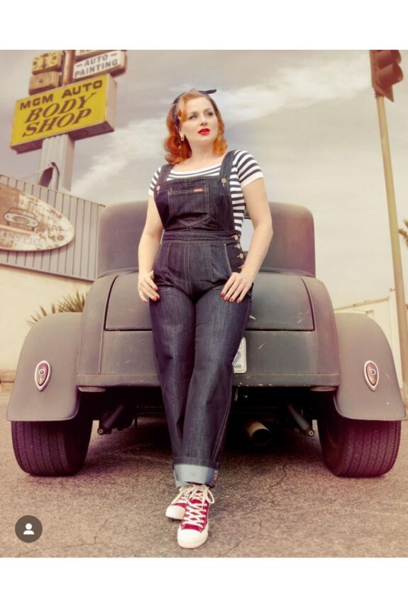 Ladies Latz Playsuit in denim staat garant voor veel draag plezier! Geïnspireerd op de werkkleding uit de vervlogen jaren 40s, daarna werd de jumpsuit populair bij vrouwen als gevolg van de campagne “WE CAN DO IT”. Deze stoere Jumpsuit in diepblauw, met mooie kokosknopen, heeft verstelbare schouderbanden, hoge taille een klassiek slabbetje, en rechte wijde pijpen, die je benen eindeloos lang laten lijken. En voorzien van een zak op het lijfje, twee grote zakken aan de voorkant en twee kleinere aan de achterkant die zorgen voor de casual Touch die elke Rockabella nodig heeft. Uitgevoerd in een comfortabel diepblauwe denim katoen mix “stretch” die heerlijk draagt. Kortom deze klassieker is een heerlijk item voor na je werk, maar is ook absoluut geschikt voor dagelijks gebruik!