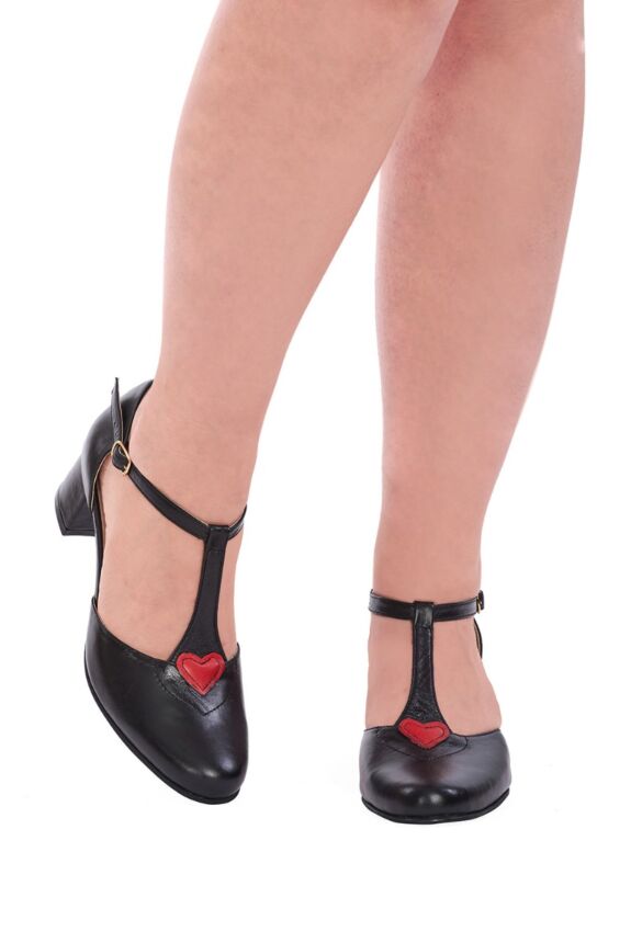 Banned nieuw de Vintage geïnspireerde Venus T-Strap Heart Heels in Black.